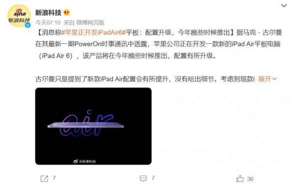 曝苹果正在开发iPadAir 6:性能提升 其他方面升级不大