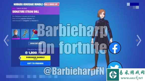 Barbie还曝光了这三位角色皮肤在《堡垒之夜》游戏中外观、售价、装备 等,如下图: