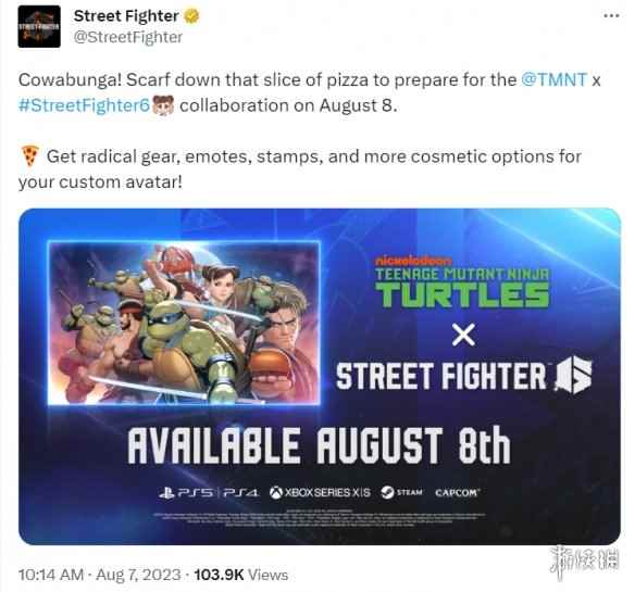 卡普空今日宣布《街头霸王6》将与《忍者神龟》联动,联动内容将于8月8日上线。