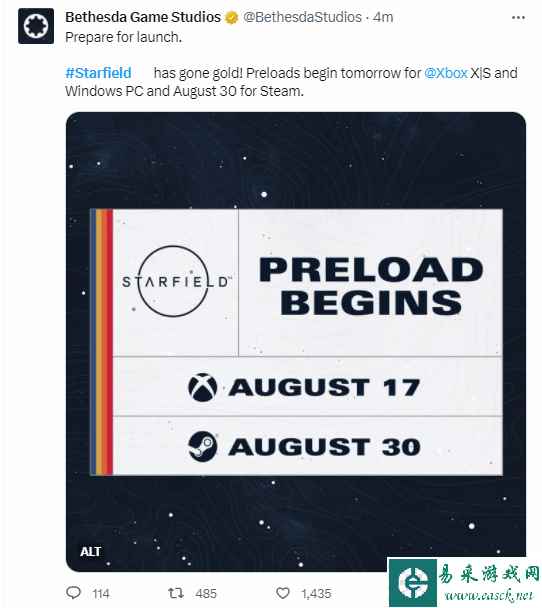 B社大作《星空》即将在9月6日正式推出,今天官方宣布游戏现已进厂压盘,XSX|S和Windows版明日开启预载,Steam版8月30日开启预载。下面让我们一起来看看吧!