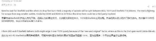 近日,有玩家发起了年度最佳游戏预测的投票,而位居前三款的游戏分别是《塞尔达传说:王国之泪》、《博德之门3》和《星空》。