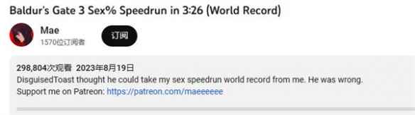 再破纪录!《博德之门3》玩家3分26秒达成涩涩成就