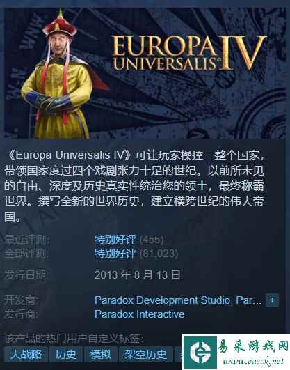 想要了解最值得关注的游戏?请看这里!多款精品游戏现已打折。今天带来的Steam特惠游戏有:《欧陆风云4》,《神之亵渎》,《极限竞速:地平线 5》,《收获日2》。 1.欧陆风云4(Europa Universalis IV)