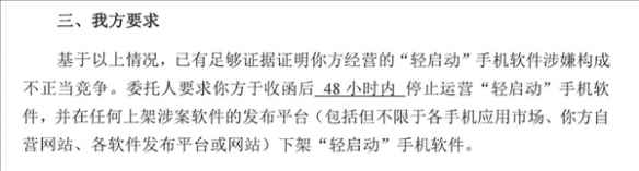 %20 %20 %20 今日,同类型App“轻启动”发文,称也收到了律师函,内容与其他App一模一样。对此,轻启动表示,不会停止App更新,但新版本将移除“自动跳过”相关的功能。另外,自动登录、自动原图、apk.1安装器、快捷启动、Toast记录器、通知记录器等功能将被保留并继续维护。 据了解,由于无法强制用户停止使用老版本,轻启动App只能停止提供老版本的下载,并在后续版本中移除相关功能。官方强调,有些三方网站、App采集平台上还能下载到老版本,请相关负责人自行下架,否则自行承担后果。 根据轻启动晒出的律师函显示,委托人诉称轻启动App涉嫌构成不正当竞争,包括可以屏蔽、过滤广告内容。委托人要求“轻启动”运营方在收到律师函48小时内停止该软件运营,并在各平台下架“轻启动”。