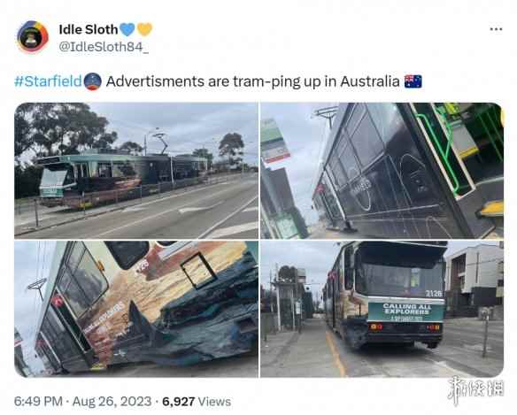 Xbox游戏新闻推主Idle Sloth透露,有玩家在澳大利亚发现了B社《星空》主题电车(如下图),Idle Sloth感慨《星空》的广告已遍布全球。