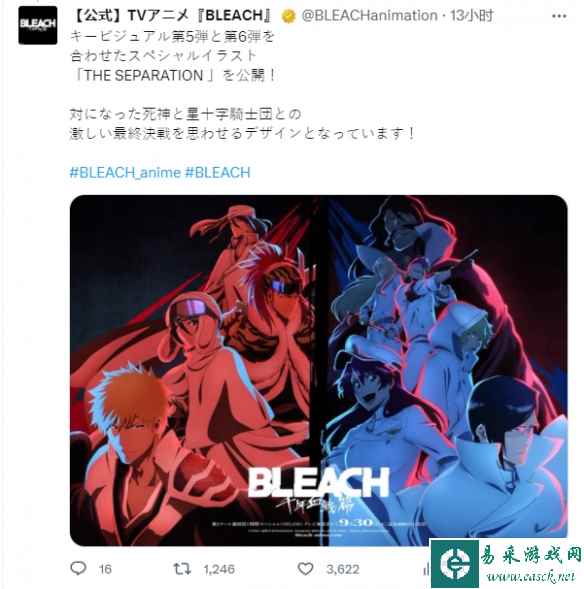 《周刊少年JUMP》经典漫画《死神》的动画《死神:千年血战篇》官方表示,第二部分“诀别谭”的最终话将于9月30日正式播出,并且第25集和第26集将被整合成一小时的特别版,官方同时公布了新的海报。