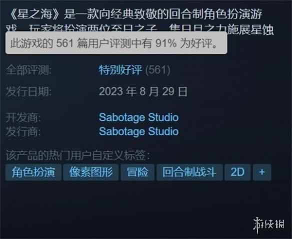 昨日,《星之海(Sea of Stars)》一经发售就获得了海量好评,截止撰稿前,该游戏在Steam的评价为“特别好评”,共收录561评测,其中有91%都是好评。大部分玩家都给出了极高的评价,认为这是一部质量上乘、值得体验的好游戏。