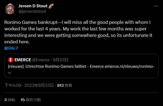 据 Game Developer 报道,《王牌英雄(Awesomenauts)》和《迷雾征程(Blightbound)》开发商 Romino Games 已申请破产。 ![]() Game Developer 申引了荷兰媒体 Emerce 的报道,这家总部位于乌德勒支的工作室于 8 月 22 日想荷兰中央法院申请了破产。 ![]() 一名员工在开发商的官方 Discord 服务器商证实了破产的消息。 这位员工写道:“我们在完成上一个项目时遭遇了一系列不幸的事件,尽管我们尽了最大的努力,但仍然无法重回正轨。” “这对于《王牌英雄》(和《迷雾征程》)多人游戏意味着什么目前还不确定:这个过程仍在进行中,一切都取决于它的最终结果。不管怎样,我自己和 Ronimo 的其他人都希望看到这两款游戏能够坚持更长时间。” 曾为《迷雾征程》单人程序员的前员工、独立游戏开发者 Jeroen D. Stout 也在推特(X)上回应了这一消息。他说道:“我会想念过去四年里与我共事的所有友善的人。过去几个月我的工作非常有趣,我们正在取得一些不错的进展,所以就这样结束非常不幸。” ![]() |