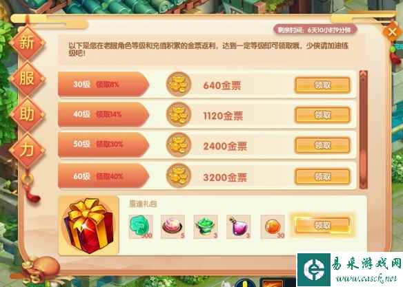 活动2:根据老角色的等级和充值返利超高金票,最高可达10W!