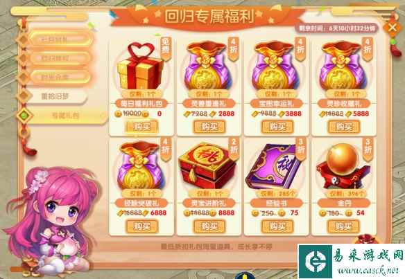 活动5:专属礼包,经验帮贡每天免费领,还有超低折扣道具包、福袋限时出售;