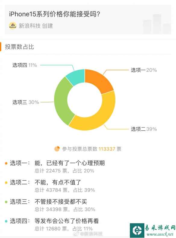 39%网友不能接受iPhone15价格:感觉不值这个价格