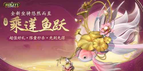 全新5星国风坐骑【乘莲鱼跃】悠然而至 触浪莲香动,鱼跃叶影披。全新5星坐骑-乘莲鱼跃即将登场! 9月8号更新后,参与限量秒杀活动,即有机会获得至尊坐骑、惊喜兑换券等奖励,小伙伴们快来获取全新坐骑吧!