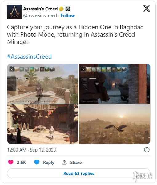 育碧的开放世界游戏一直以来都以其美轮美奂的画面而著称,即将发售的《刺客信条:幻景》也不例外,对于这类游戏,如果说没有一个拍照模式,想必会让很多玩家感到失望。 育碧最近证实,《刺客信条:幻景》首发将会包含一个拍照模式,《刺客信条》官推今天发布推文再次确认了这一点。