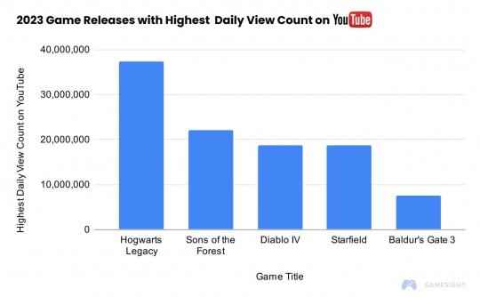 据统计数据显示,《星空》抢先体验期间,在YouTube上最高达到18,772,052次播放,成为今年YouTube上最热门的五大游戏之一,仅次于《霍格沃茨之遗》《森林之子》和《暗黑破坏神4》,比《博德之门3》高很多。