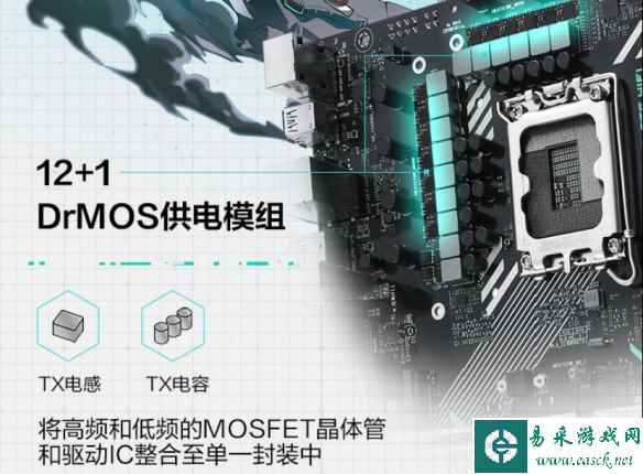 华硕B760天选背置主板采用12+1供电模组及用料扎实的DrMOS,搭配8+4Pin ProCool高强度供电接口,加上超大散热鳍片,高效降温,轻松驾驭13代及下代酷睿处理器。还有APE 3.0(ASUS Performance Enhancement 3.0)功能,在BIOS中开启后即可一键解锁处理器功耗,提供更强的处理器性能释放。