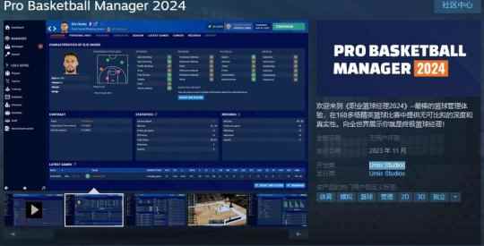 管理游戏《职业篮球经理2024》Steam页面上线 11月发售
