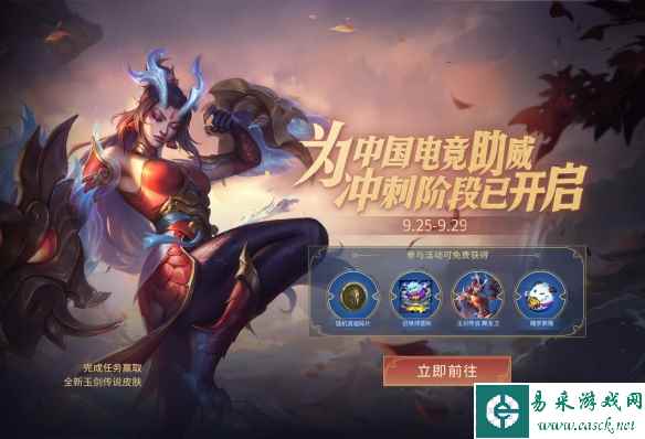 参与助威活动赢皮肤,助力中国队竞逐亚洲之巅 即日起至10月6日,英雄联盟客户端内开启【剑指亚洲之巅】助威活动,召唤师们可以通过签到、对局、观看比赛等任务来积累助威值,为中国电竞选手加油,同时解锁丰厚的纪念福利。