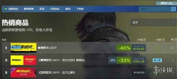 《2077》热度再次爆表:包揽Steam全球热销榜前三!