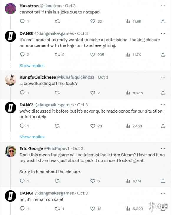 由于这个公告是使用电脑自带的记事本书写的,有玩家表示这看起来不像是正式的公告,像是个玩笑一样,官方则表示这是真的,他们没打算做一个很专业的关闭公告。还有玩家询问众筹是否可行,官方表示他们也讨论过,但就他们的情况而言这意义不大。