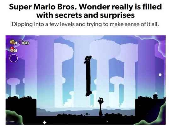 Vooks.net表示该作最终感觉像是一款真正的“新”游戏: “惊奇”可能会成为一款更接近马里奥的游戏,而且它肯定是迄今为止最新奇、最令人惊讶的2D马里奥游戏——可能是有史以来。