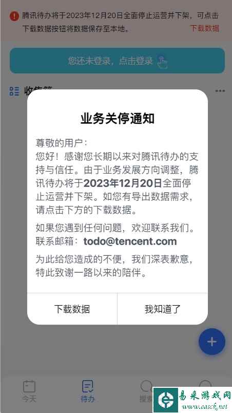 腾讯又一项业务关停!腾讯待办12月20日停止运营并下架