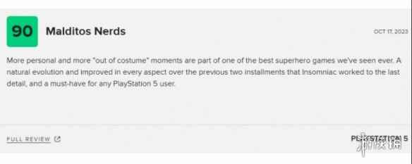 Malditos Nerds 90分: 《蜘蛛侠2》中的个性化内容是我们当前在超硬题材游戏中遇到的最棒的。与前两部作品相比,本作在各个方面都有了自然的进化和改进,失眠组对每一个细节都精益求精,本作是所有PlayStation 5用户的必备之选。