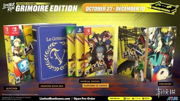 Limited Run Games将发行《女神异闻录4 黄金版》的实体版游戏,包括PS4光盘、Xbox One光盘、NS卡带。虽然是美版,但是本作为全区中文。