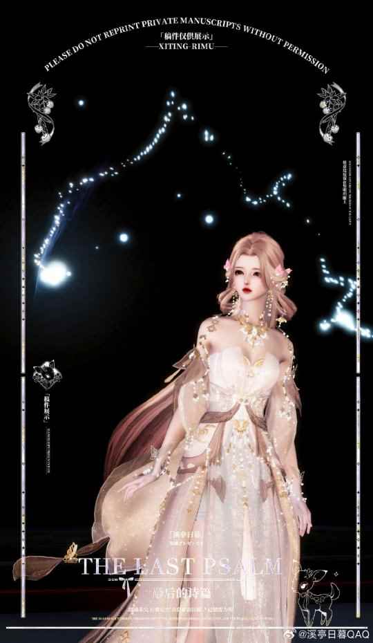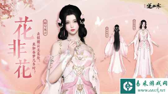 女款【花非花】采用的粉白色调清新脱俗,花瓣状的剪裁别出心意,如瀑青丝温柔挽起,与点缀在发间的饰品相呼应,女玩家换上后,宛如百花仙子降临人间,行走时自带唯美滤镜。