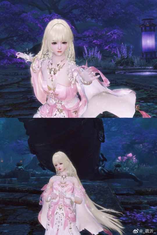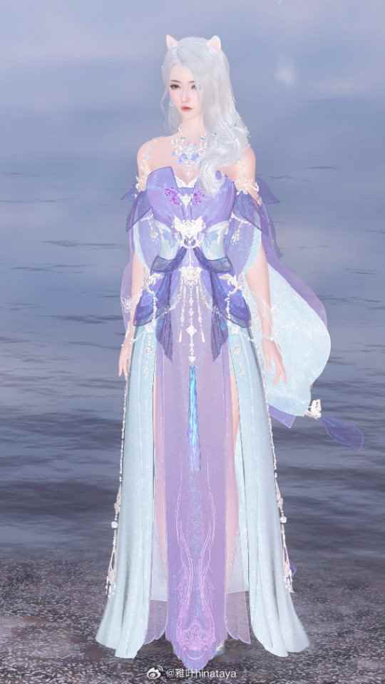 而得益于逆水寒超高自由度的染色机制,新时装又给玩家们带来了截然不同的穿搭体验。比如染成紫色的时装优雅大方,似是月下美人踏浪而来,素白色系则溢满仙气,整体多了一些清冷感。