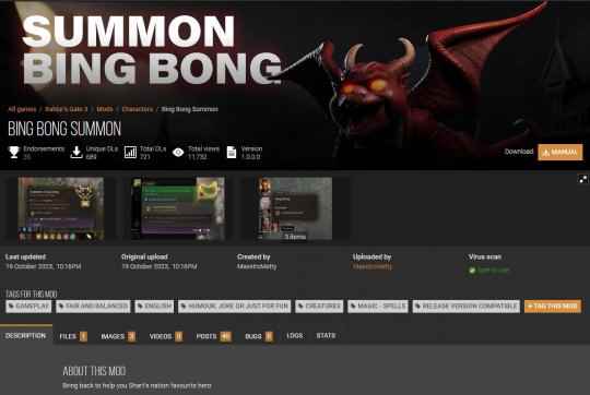上个月《博德之门3》的演员们参与了“High Rollers DnD”的特别跑团活动,除了各种精彩瞬间,其中更是让小恶魔“Bing Bong?”成为团宠。 活动之后有《博德之门3》的玩家要求开发商拉瑞安将“Bing Bong”添加到游戏中,而有活跃的MOD制作者迅速承接了这一任务。 据媒体Gayming发现,《博德之门3》的“Bing Bong Summon”MOD现在可以通过MOD网站Nexusmods找到并下载,玩家在游戏里可以真正让这个小家伙与影心团聚了。