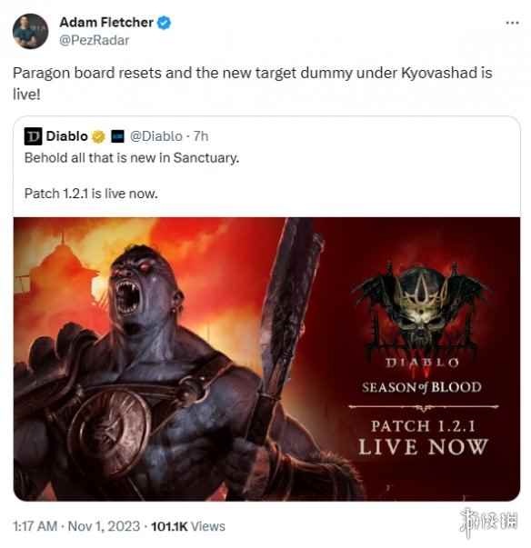 《暗黑破坏神4》1.2.1版本现已更新,社区总监Adam Fletcher特别提醒 一键重置巅峰盘 和 训练假人功能现已上线。