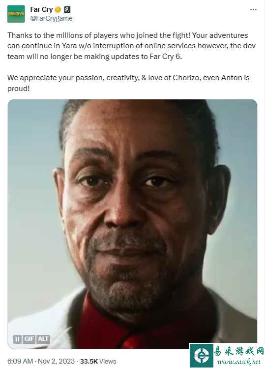 《孤岛惊魂》官推今日宣布,于2021年10月7日发售的《孤岛惊魂6》将停止更新,在线服务会保留,玩家可以继续冒险。 《孤岛惊魂》官推说到:“感谢数百万加入战斗的玩家!你可以在 Yara 中继续冒险,在线服务没有中断,但是开发团队将不再更新《孤岛惊魂6》。我们感谢你的热情、创造力和对西班牙辣香肠的热爱,甚至 安东 也为此感到自豪!” 推文中有不少网友询问育碧有没有做《孤岛惊魂7》,但官方并未回应。不过外媒Insider Gaming曾爆料,育碧已经在做《孤岛惊魂7》,内部代号为“Project Blackbird”预计2025年秋季发售,巴西游戏媒体 Universo Nintendo 的主编 Necro 还透露《孤岛惊魂7》将登陆Switch 2。 |