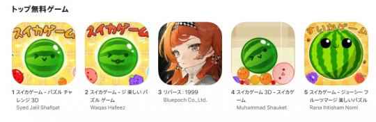 日区App store的热门免费游戏下载榜,最近几周就一片“绿意盎然”。以《西瓜游戏》为首,一众模仿该玩法创作的游戏愣是让榜单变成了“瓜田”。这款休闲游戏基本实现了对全年龄段玩家的覆盖,接连登陆Switch和移动端平台,也使其影响力不断提升。