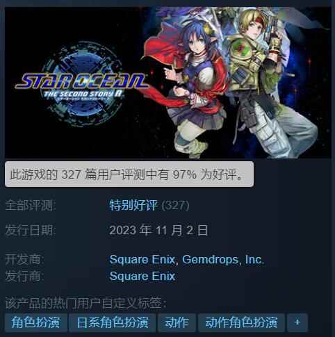 JRPG新作《星之海洋:第二个故事 R》已于11月2日发售,截止到发稿时为止,该游戏在Steam上的总评价为「特别好评」,一共327篇用户评测中,好评率高达97%。