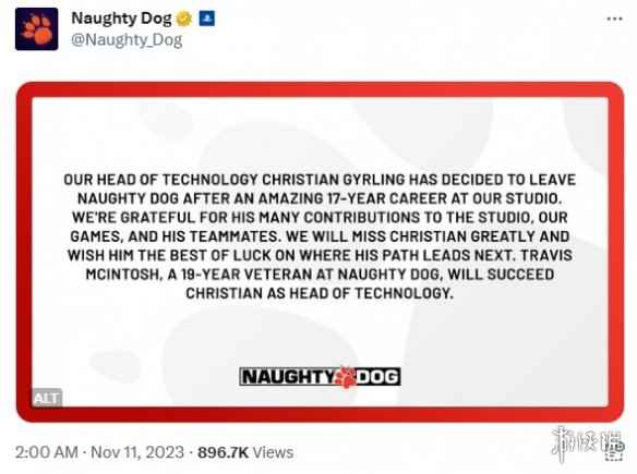 6.顽皮狗技术主管离职 顽皮狗工作室今日宣布,技术主管Christian gyrling决定离职,他已在顽皮狗工作了17年之久。另一位在顽皮狗工作了19年的Travis McIntosh将接替他的位置。