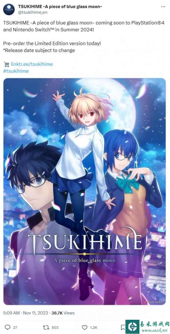 5.《月姬:月之欠片》2024年夏季登陆PS4和Switch 《月姬:月之欠片(月姬 -A piece of blue glass moon-)》官方宣布本作将在2024年夏季登陆PS4和Switch,限量版现已开启预订。