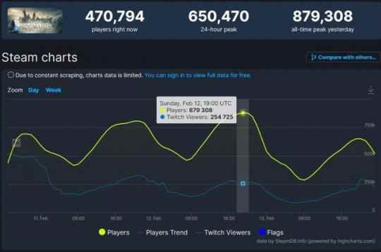 老实说,TGA年度游戏展上的奖项评选,向来不是看哪些游戏的知名度高,就会进行提名的。拥有跟《星空》类似遭遇的作品,还有年初爆火的《霍格沃兹之遗》,这款游戏在Steam上的在线人数一度达到了近90万,是今年发布的新游之最。