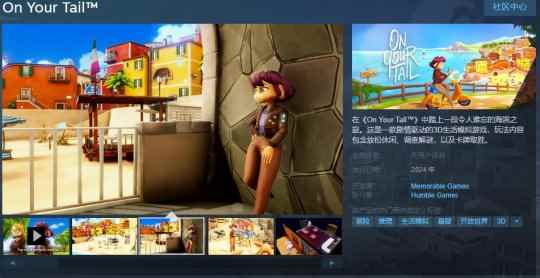 今日(11月15日),剧情驱动的3D生活模拟游戏《On Your Tail》Steam页面上线,游戏支持简体中文,明年发售,感兴趣的玩家可以关注一波。