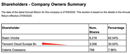 值得注意的是,在《博德之门3》得到TGA八项提名以后,有网友发现了拉瑞安背后的秘密。一份来自拉瑞安工作室 2020 年的财务文件显示,腾讯云欧洲BV持有其30 %股份。而关于具体的注资时间并未公开,但可能追溯到《博德之门3》的立项之时。