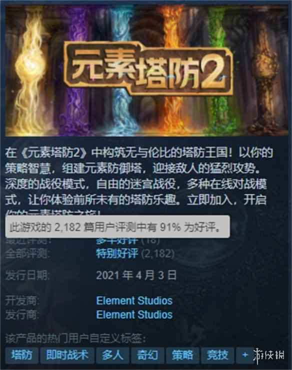 Steam特别好评游戏《元素塔防2》实现完全中文本地化!