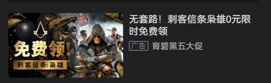 育碧黑五大促来咯!除了给力的满98送50钱包余额外,育碧似乎还在偷偷准备喜加一。育碧在B站发布了黑五促销视频,弹幕列表旁的广告页面赫然写着“无套路!刺客信条枭雄0元限时免费领”,并配有专门制作的宣传图。 虽然广告确实如此描述,但并没有免费领取的页面。有玩家在评论区发出疑问,令人感到很奇怪。 截至发稿前,育碧已将该广告从B站撤下。是意外提前发布了惊喜,还是活动内容有变数?究竟能否白嫖《刺客信条:枭雄》呢,请关注网后续报道。 目前育碧自己喜加一赠送的《刺客信条》游戏截止至《刺客信条:大革命》,下一部《刺客信条:枭雄》曾在Epic喜加一过(锁国区)。 |