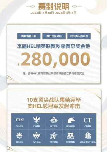 破云焕新竞!2023HEL英魂之刃精英联赛秋季赛于11月18日(本周六)16:00开战,高燃开赛宣传片、战队出征海报出炉,看看是否有你熟悉的战队呢?此外,本届赛事的赛制规则来袭,快与朋友一起欢乐观赛,赢取皮肤、电竞周边好礼吧!