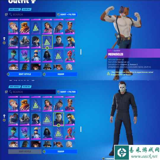 《堡垒之夜》此次经过分级以后,最低的年龄限制为E级(仅限于青少年)。可是其中的皮肤类型却并不像E级玩家使用的,譬如裸露上半身的肌肉猫,以及知名恐怖片中的主角杰森。 而如果光是部分皮肤的界定有问题也就罢了,当玩家使用这些标记E级的皮肤时,就无法使用创意模式了。