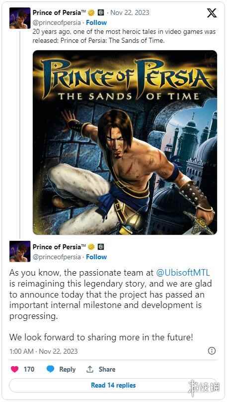今天,在庆祝原版《波斯王子:时之沙》20周年纪念的推文中,育碧表示《波斯王子:时之沙 重制版》的开发工作正在幕后持续取得进展,而该项目的开发工作最近也达到了一个“重要的内部里程碑”。 育碧说道:“正如你们所知,育碧蒙特利尔充满激情的团队正在重新构想这个传奇故事,而我们今天很高兴地宣布这个项目已经通过了一个重要的内部里程碑,开发工作正在持续取得进展中。我们期待在未来分享更多信息!”