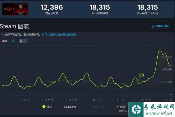 4.免费试玩+新史低!《暗黑4》Steam在线人数再创新高 《暗黑破坏神4》近日在Steam平台开启了免费试玩,再加上新史低促销中,游戏的在线人数峰值再创新高。根据SteamDB数据统计,新的在线人数峰值达到了18315人。截至发稿时为止,游戏在线为12396人。