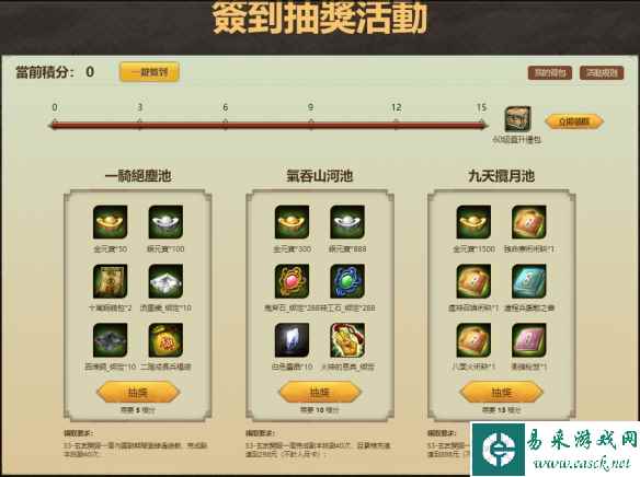 本次预约页面活动中设立三个奖池,活动开启后每日可在签到抽奖页面进行签到,签到成功皆可获得【签到积分】和【等级直升礼包】,消耗【签到积分】即可在奖池中进行抽奖。三大奖池蕴藏超多稀有道具,先抽后领,爽感加倍!鬼斧石、神工石、流星铁、百炼钢、高级技能书、上千金元宝尽在其中。战场未至,但已硝烟弥漫。想要在英雄众多的新战场占据优势,新服活动机不可失! 除预约奖励外,开服初始我们还为玩家们准备了丰富的活动和超多的豪华道具。随着开服时间渐近,我们将逐步展现新服的各个活动,保证在让各位玩家在征战沙场的同时,还能将豪礼收入囊中。更多精彩活动,独家爆料,敬请期待! |