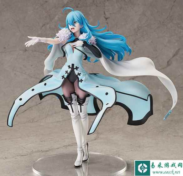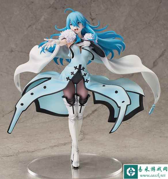 将“用歌唱让大家都幸福”视为使命的AI薇薇以歌唱的姿态进行立体化。一头蓝色的长发发梢飞扬,头顶立着一束呆毛,少女单手放在胸前,另一只手伸出,高声歌唱的样子十分优雅。白色的披风搭配着绒帽披肩,披风的衣角还有着半透明材质打造的水晶装饰。蓝色的长裙搭配上白色长靴以及黑色连身衣与长袜也十分有层次感。