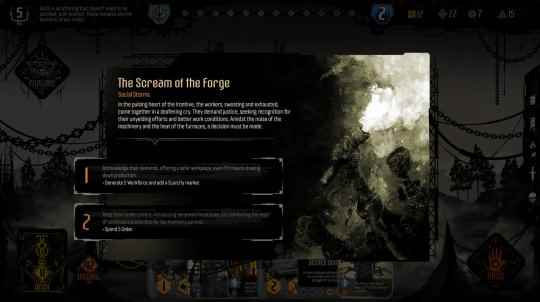 游戏介绍: 《Ironhive》是一款关于在濒临灭亡的世界中生存的卡牌构建游戏。建立你的殖民地,确保你的人民生存下来,创造出将传给下一代的遗产。作为铁领主,你是他们仅存的希望。 游戏特点: 重建你的家园 提升住房、公共设施、社会、生产和防御建筑。当心——大城市需要大量的资源,如果你无法提供这些资源,你的殖民地就会损失稳定度,导致快速崩溃。 被选择所腐蚀 明智地使用你所拿到的卡牌。每一回合都代表着你所生存的一个季节,只要你仍具有稳定度,就仍有希望。如果稳定度归零,你就完了。 探索废土 派出探险队,寻找重要资源、技术和各种物品。但请记住:回报越美好,风险就越高。 迎接严酷世界的挑战 你做出的决定将直接影响你的城市。所有的叙事事件都彼此相关,为你的各个殖民创造出各种各样的不同故事。你可以选择何时处理它们,但你等待的时间越长,情况就可能变得越复杂和严峻。 保护你的遗产 将你的遗产记录在你们人民历史的灰烬之书中。每当你写下你的故事,可以选择一个文化或历史特征,它会影响你的下一个殖民地,给你新的天赋或奖励。 游戏截图: