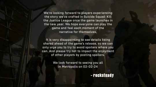 开发商就《自杀小队:战胜正义联盟》游戏泄露发表声明 呼吁避免剧透