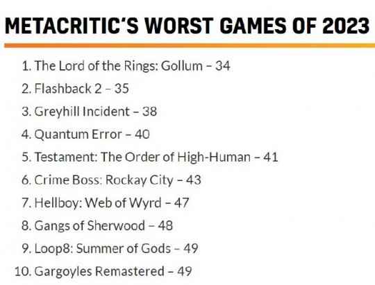 神仙打架 M站年度最差游戏TOP10 《魔戒:咕噜》登顶